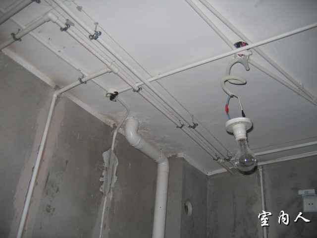 [水电] 卫生间顶棚的水电路施工实景图 |