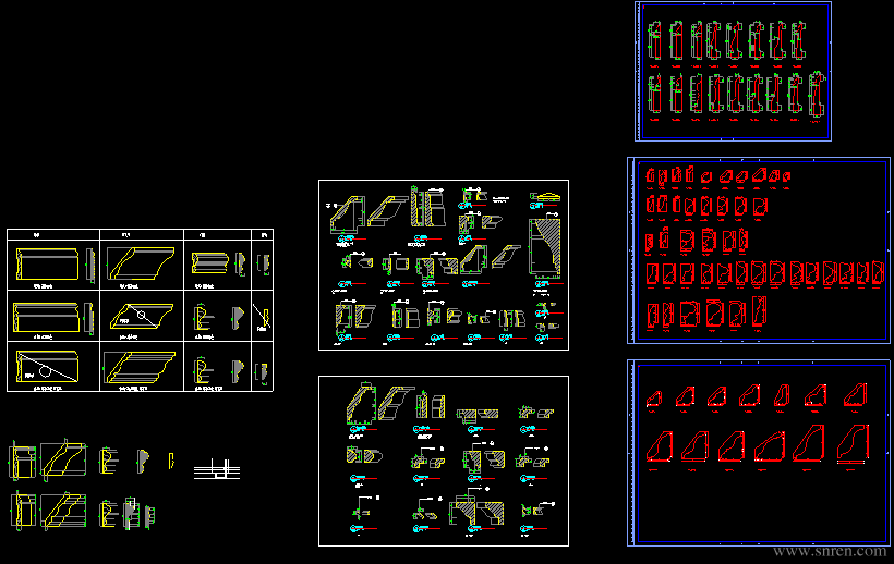 [图库] 大理石线条-石膏线脚线和角线cad图库 |
