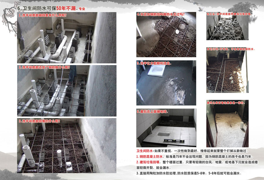 7.卫生间防水,正常做防水的问题与新的施工工艺,业主最在意的环节。