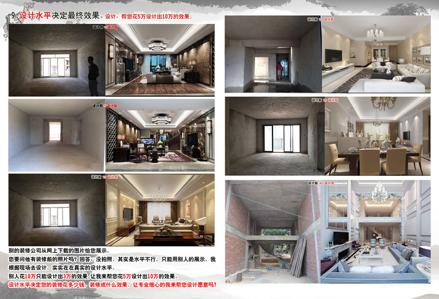 10.设计,设计与现场,让别人知道你的设计能力,区别 别人从网上下载给客人看。