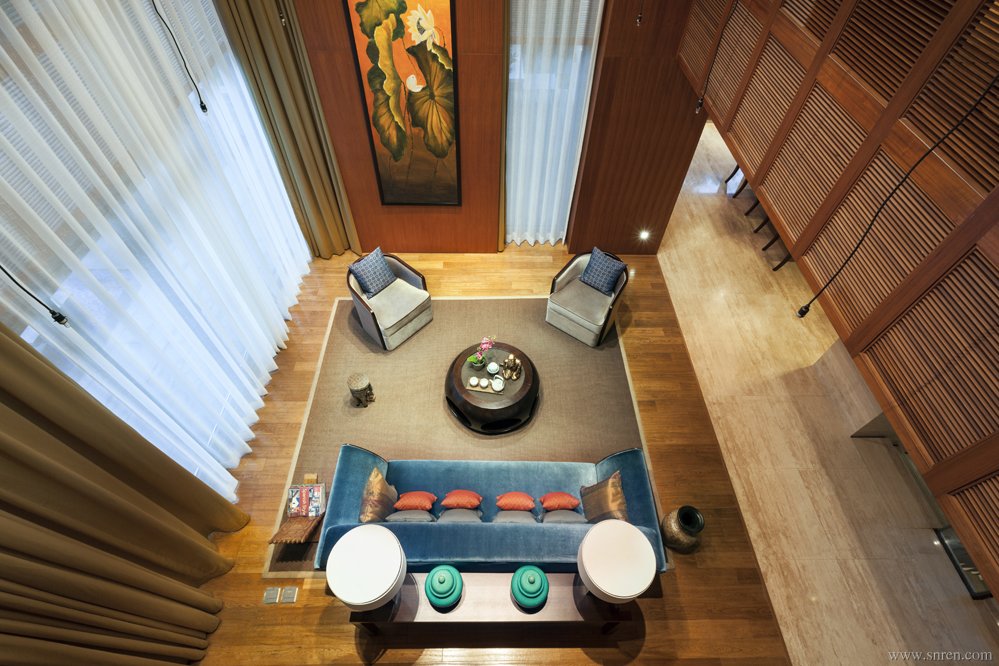 空间中将东南亚崇尚自然的特性通过石材、实木及藤条来表达,给视觉带来厚重感,而现代生活需要清新的质朴来调和。设计中采用的天然材料,让所有细节得以最好呈现。整个空间蕴藏着一股难以言明的空间气息,或东方,或异域,但远离喧嚣,回归自然,里外一致,置身于谧。