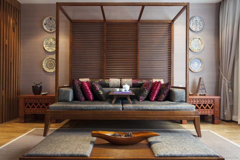 2F:家庭室内搭配特色卧榻及具有东南亚风格的配饰,来营造出轻松、休闲的空间气氛。