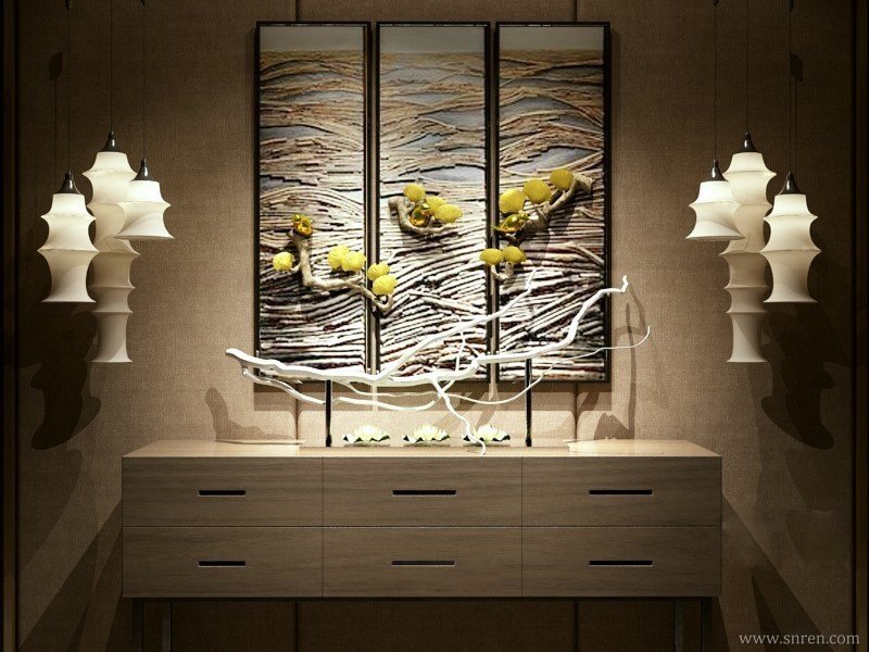 [装饰品] 中式装饰画摆件+边柜组合 max2014 带贴图 |