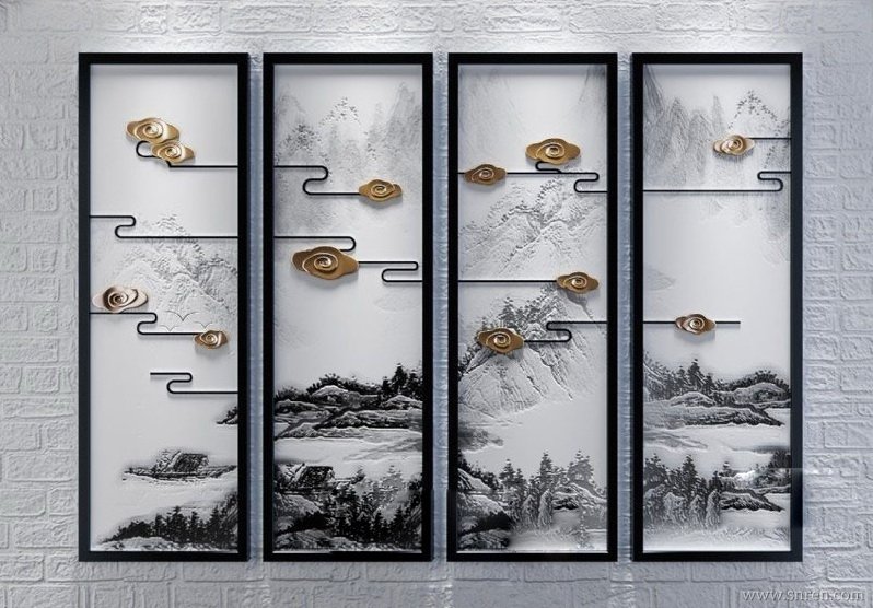 [装饰品] 新中式挂画山水意境四联画 中式装饰画立体画 max2010 贴图全 |