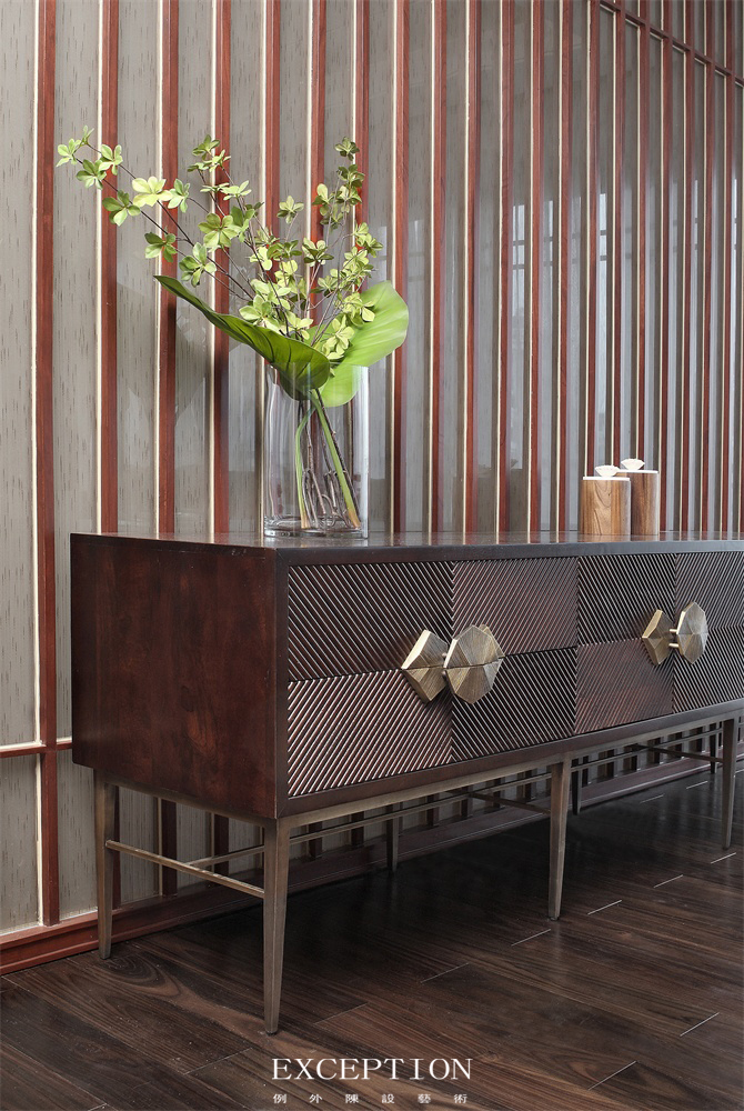 八零后的业主择居在深圳繁华地段的东海花园。儒雅的男主人欲打造传统中式的居所,让内心,宁静以致远,让生活,淡泊以明志。女主人却想营造一个让全家人都能充分享受自然、休闲、舒适的空间。对于设计师来说,这并不是“鱼和熊掌”的命题,经过沟通,设计师选用了新中式设计,以简约的布局、静谧的色调和优雅的造型营造出古典的文人气息氛围和淡淡的禅意意境,同时通过灯光、布艺、空间等注入家的感觉。建一方净土,装下家人恬静的微笑和幸福。