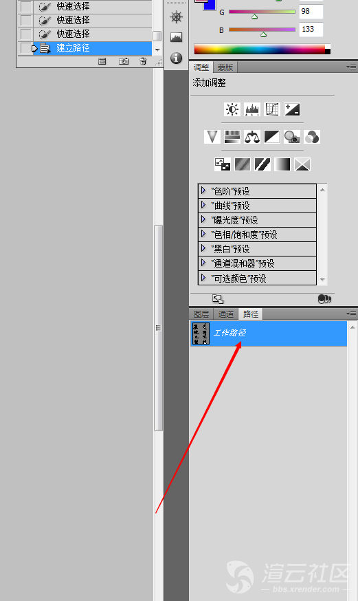 建立工作路径,我们在右边的【路径】一栏就能看到我们建立好的路径。