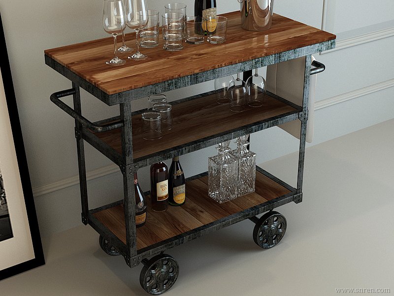 [构件] loft工业风餐车 酒水推车套装 max2012 带贴图 |