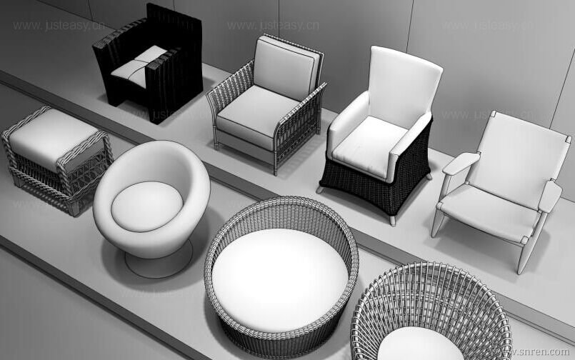 [桌椅] 现代休闲躺椅 藤椅 阳台椅组合合集下载 max2012 带贴图 |
