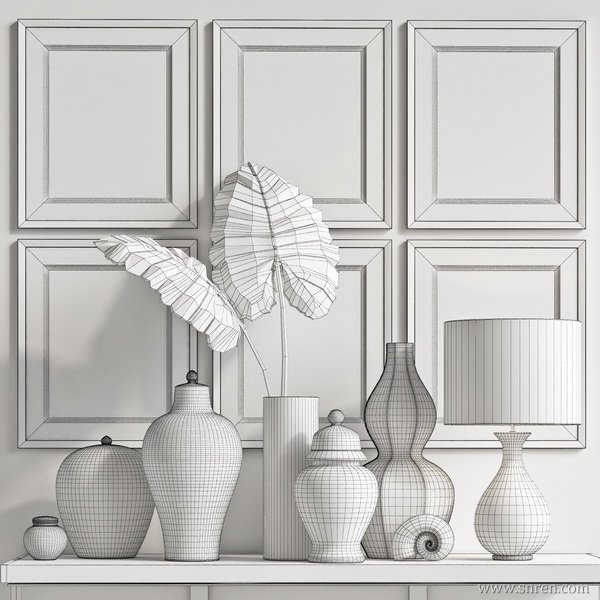 [装饰品] 青花瓷系列挂画与摆件组合模型 max2012 带贴图 |