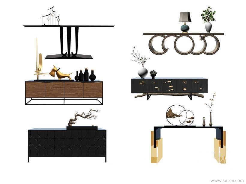 [柜子] 新中式玄关柜装饰柜组合 max2014 带贴图 |