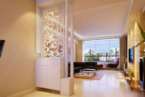 玄关一般以清爽的中性偏暖色为主,很多人家喜欢用白色作为门厅的颜色,其实在墙壁上加一些比较浅的颜色,如橙色、绿色等,与室外有所区别,更能营造家的温馨。 3、玄关隔断: 为了避免客人在进入房门的时候对房间一览无余,可以在玄关和客厅之间设置软隔断,这个软隔断可以是屏风等,既有很好的装饰效果,又能起到阻隔视线的作用。 4、玄关家具: 玄关的空间不大,家具的摆放应该不妨碍出入,又能发挥功能,通常情况下,低柜和长凳比较有用,因为低柜属于集纳型家具,可以放鞋、杂物等,并且不会占用太大空间。