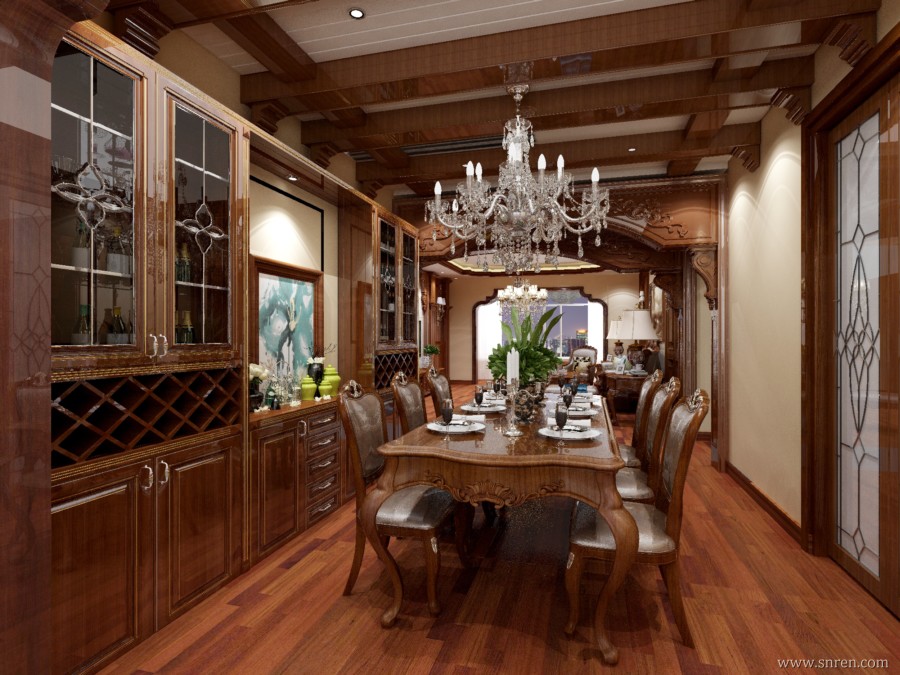 压缩包中带7张无水印效果图(大小2000*1500像素) 美式家装客餐厅下载地址: