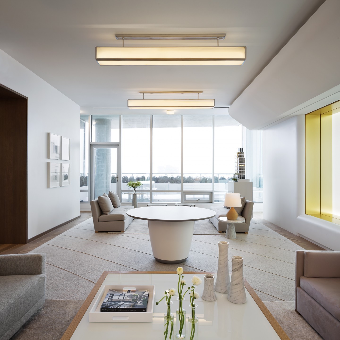 它也真实地传达了奢华的品质,精致的细节,Foster + Partners的提供了概念,包括幕墙的想法,11英尺高的天花板高度和窗口优雅的比例等意见。室内设计师Lee F. Mindel表达得很完美。 It also truly conveys the luxury of fine quality, fine detail, and Foster + Partners offers ideas such as the idea of a curtain wall, an 11 foot high ceiling and an elegantly proportioned view of the windows. Interior designer Lee F. Mindel is a perfect expression. Lee F. Mindel, FAIA & The Late Peter Shelton