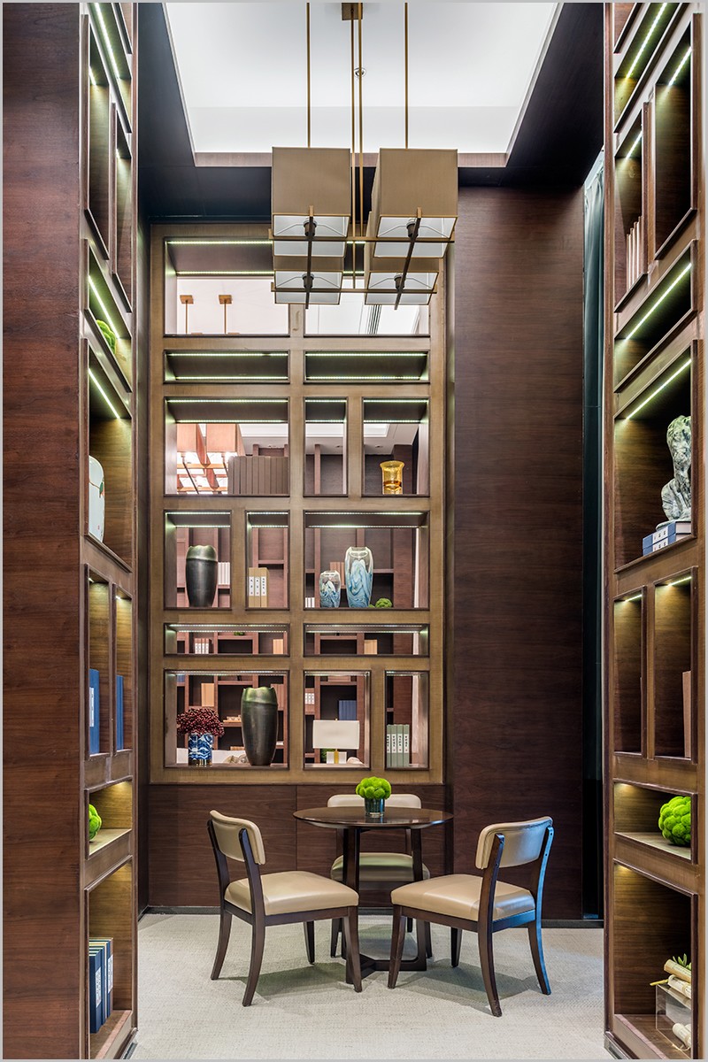 图说:从喧嚣街道步入会所,兼具会客与阅览的区域如同一处庭院,在或谈笑风生或静谧品读中保有一份惬意。