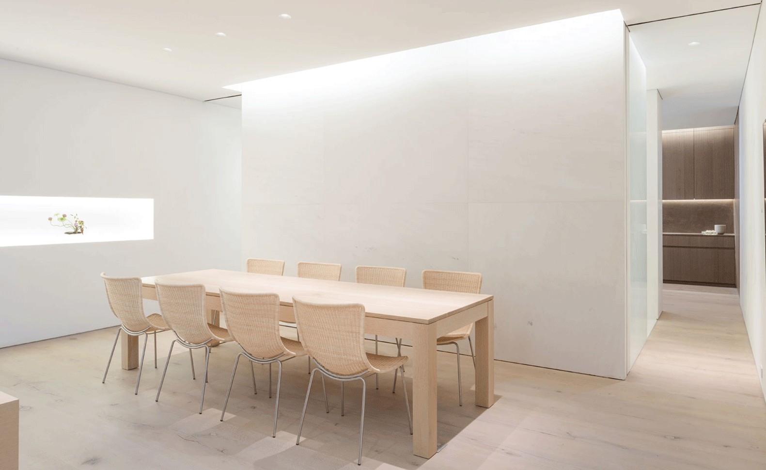 室内设计师迈克尔·加贝里尼则延续了安藤一尘不染的设计理念,以高端私人定制的追求,通过完美的比例,展现了一个魅力无限的安静的家。 Interiordesigner Michael Gabellini continued the Ando spotless design concept, to thepursuit of high-end private custom, through the perfect ratio, showing a charmof infinite quiet home.