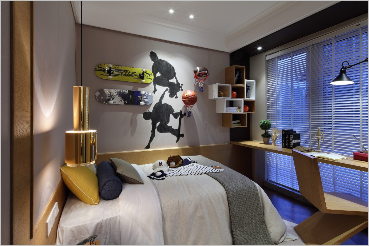 男孩房以暖色壁纸为主,个性时尚,空间中的饰品增添童趣,而个性的玩具更从视觉上提升了空间的多元化。
