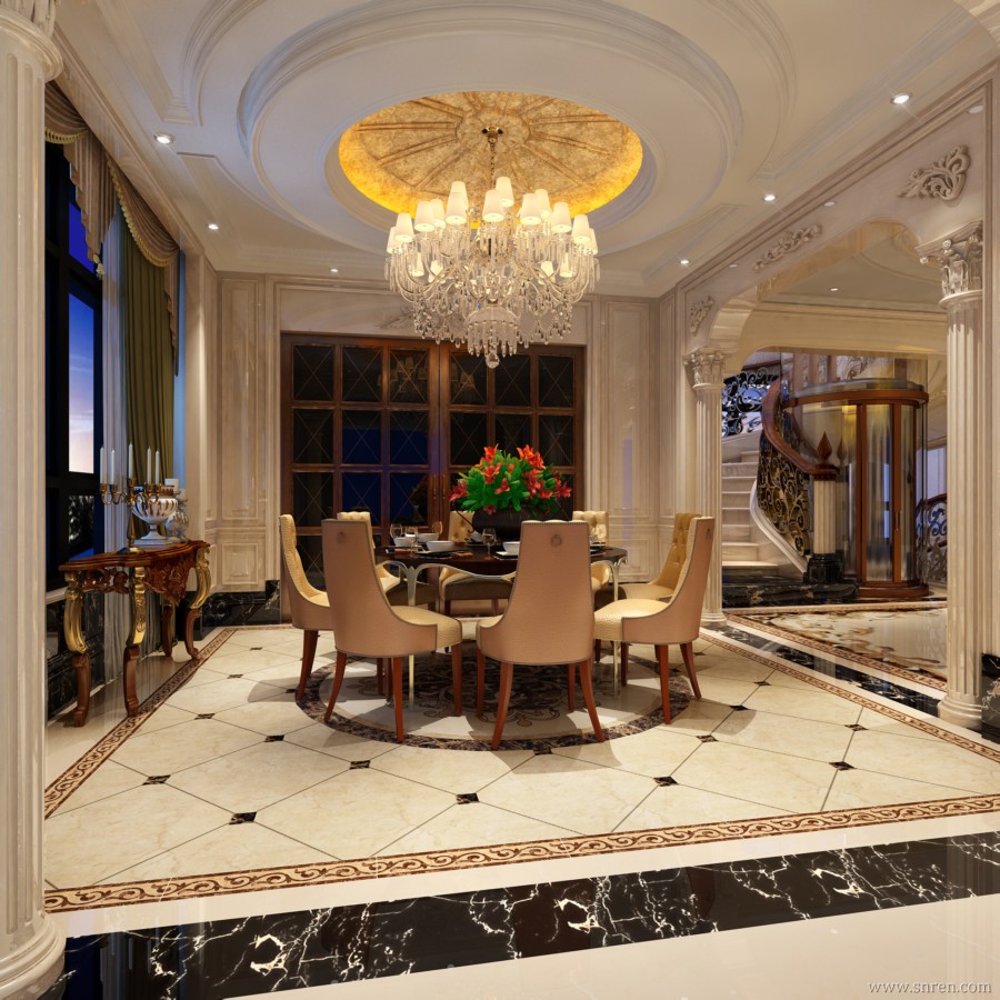 [别墅] 欧式奢华大气别墅空间施工图+效果图 |
