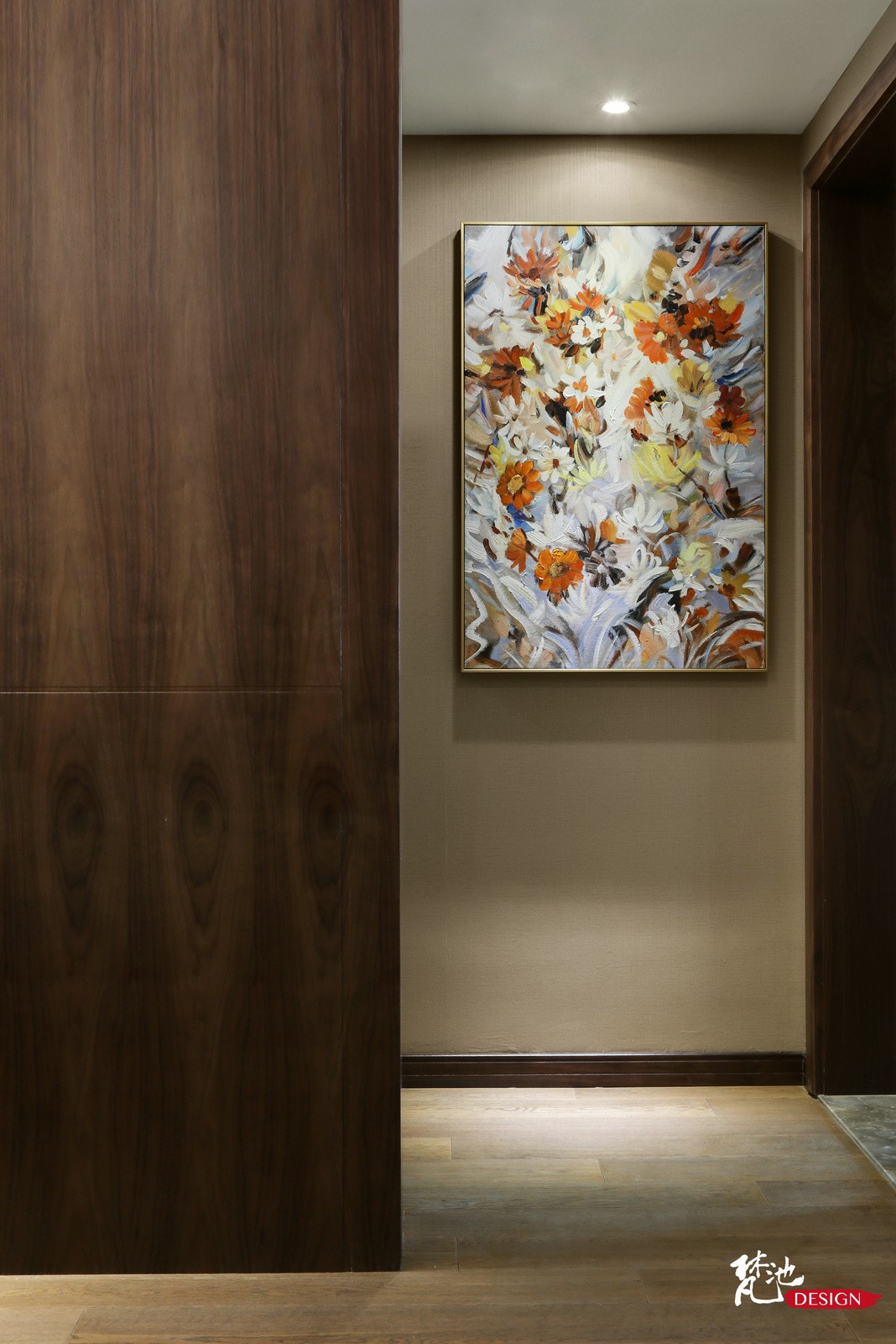 长廊挂画明亮富丽,给整个空间营造了简单中的低调奢华感,既彰显出东方特有的神韵,又流露出现代典雅清新!