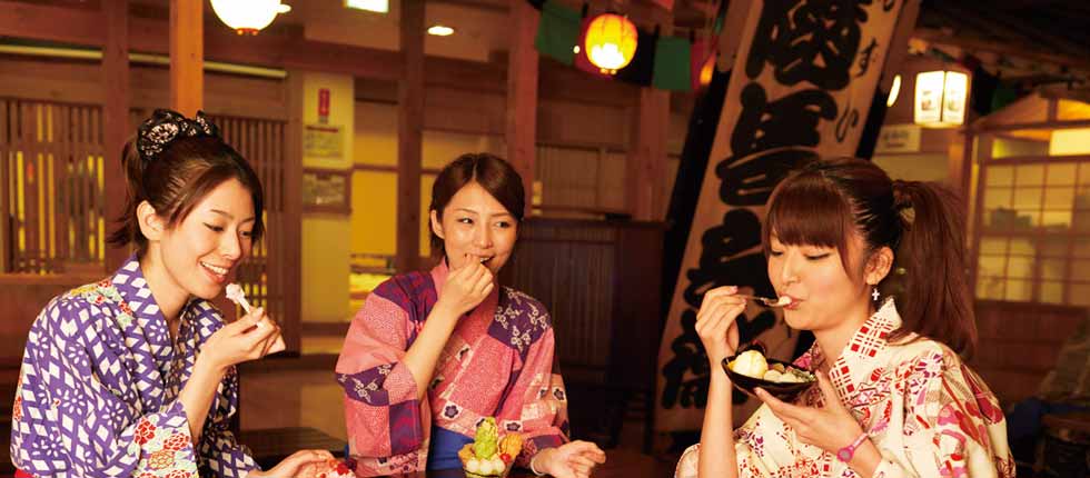 在这里衣食住玩应有尽有:十几种传统的日式浴衣、地道的日本按摩、日式美容护理......更有一番风情的是重现了江户风貌的古老街坊,由“广小街”作为主要街道环绕在场所内部,有吹箭、套圈、算命等传统的民间游艺,还有不定期举行的民俗传统节目......漫步在大江户物语的时候就如同漫步在江户时代的街道,深刻感受江户时代的生活气息。