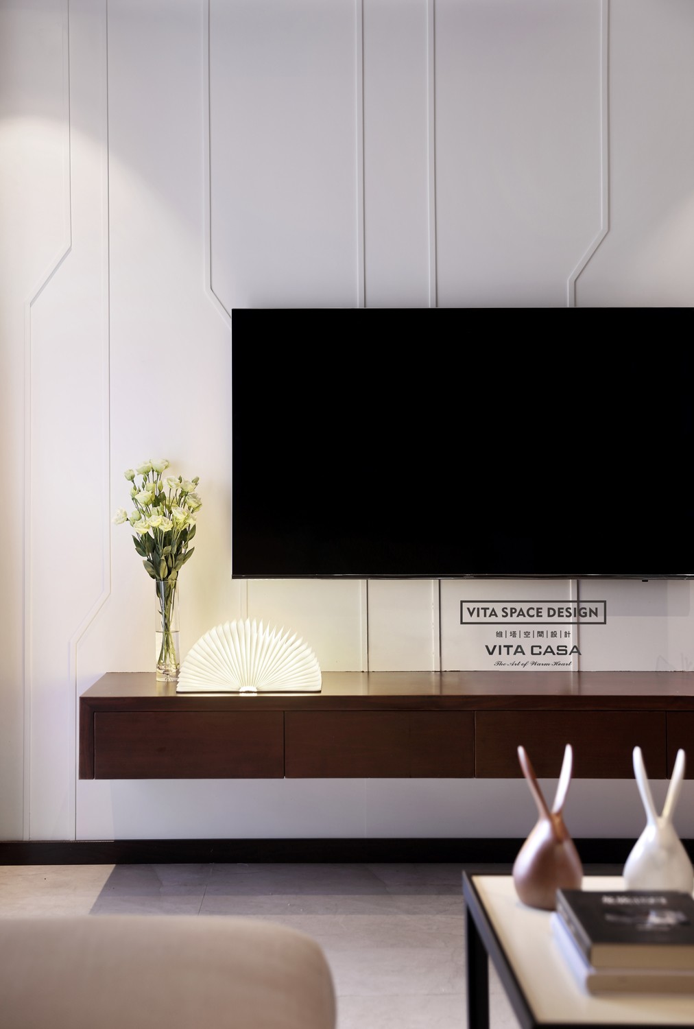 在原有布局上稍做调整,使各个空间在尺度上更为舒适、合理。过道全隐形门的设计,使得空间大气之于不显局促,对于沙发的摆放和选购有一定的思量,沙发靠柜的设计在空间上起到了很好的隔断和装饰作用,合理地简化和布置居室,使动线明了,最大程度利用空间。
