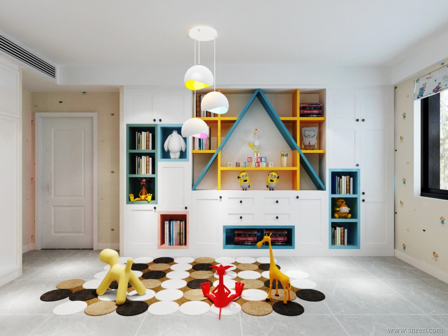 压缩包中带4张无水印效果图(大小1413*1125像素) 现代风格儿童房下载地址: