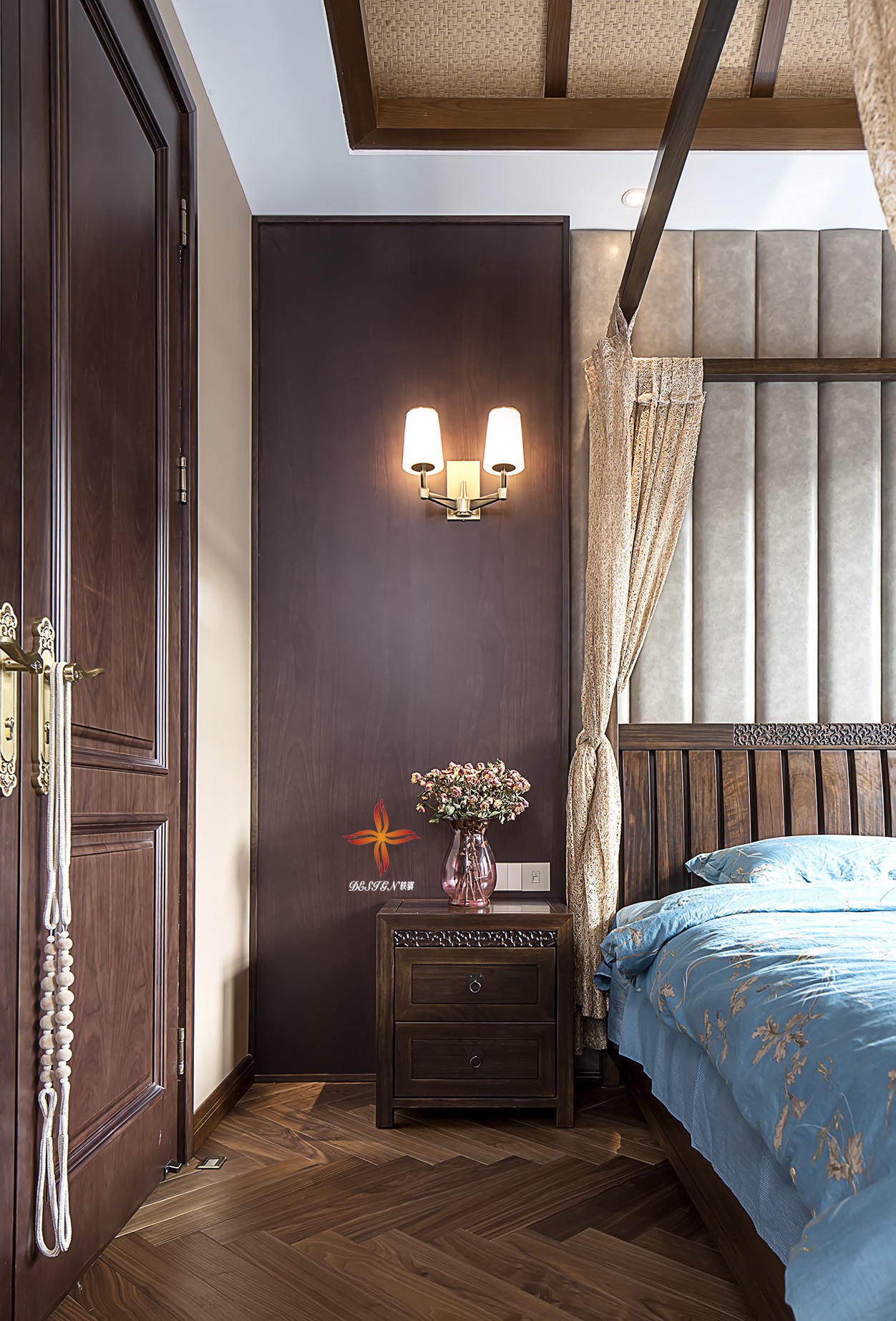 设计说明: 本案为三层复式别墅,以具有东方特色的木质元素为主,打造内敛精致的新中式意境空间。 设计师根据该户型与客户的需求,将原有的房屋结构重新规划,充分利用房屋空间,每间卧室都配备了足够大的储物空间,以及独立的卫生间和书房空间。 整体以胡桃色的木质家具为主导,搭配色彩明快的软装饰,给人高品质感,又不缺乏家的温馨与舒适。