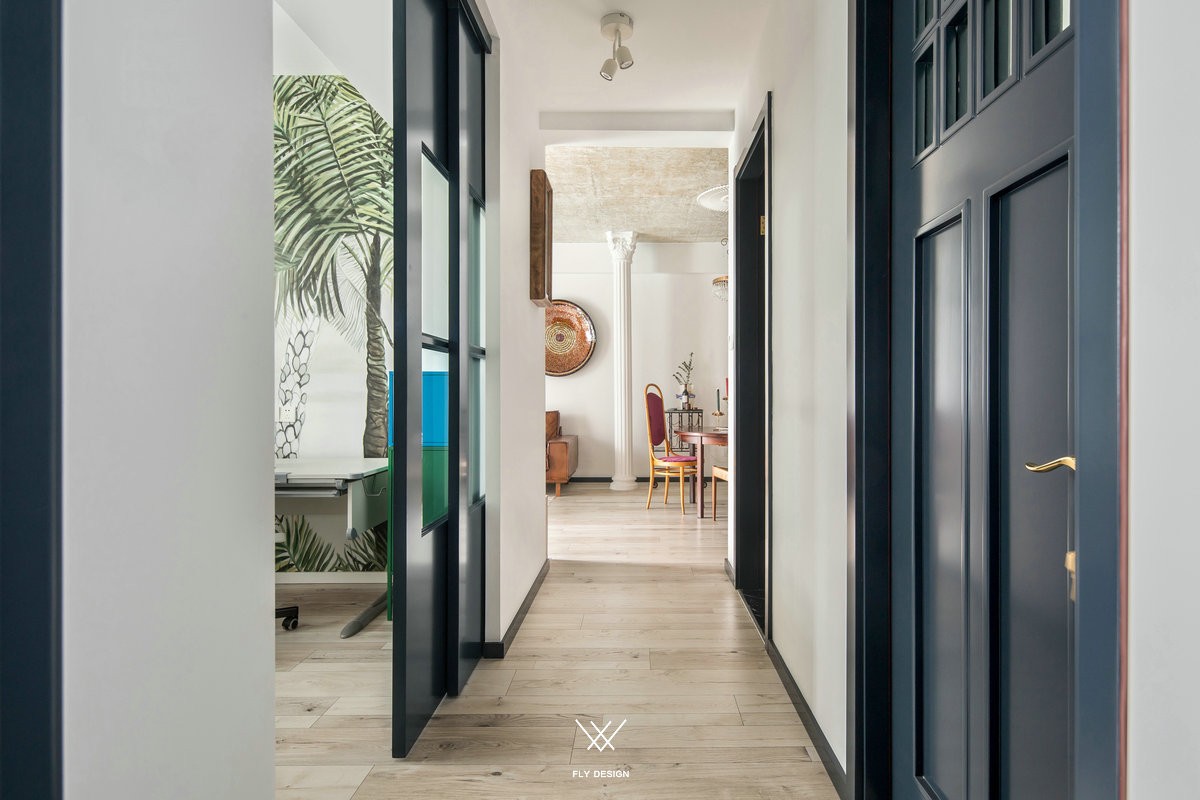 设计说明 有趣的设计来源于一个有趣的家以及擅于发现生活之美的设计师。设计随心,不强求形式,不限制于风格。本案业主是一个幸福的三口之家,女业主有着对生活非常细致的要求,原本女业主是想把自己的家打造成休闲的北欧风格,但随着设计师与女业主深入的沟通,就成了现在这种效果。如果一个要为本案定义一种风格,我觉得是—shabby chic style 接下来说说本案户型上的改造,首先就是开放式厨房,打破原有定势的厨房以及卫生间格局,升级了功能上需求。设计师在风水上也进行了改造,规避了一些常常出现的风水禁忌,让业主在心理上更为舒适。次卧和小孩房的格局完全进行了重造,在有限的空间上,增加空间的储藏以及动线的合理。 主材以及软装是这个案子的亮点,设计师在这块上用了很多心血,比如各个空间的房门,都出自设计师的设计,甚至是衣柜的柜门把手这种细小的五金件也都来自设计师的精心设计。当然最重要的是业主对设计师的充分信任。