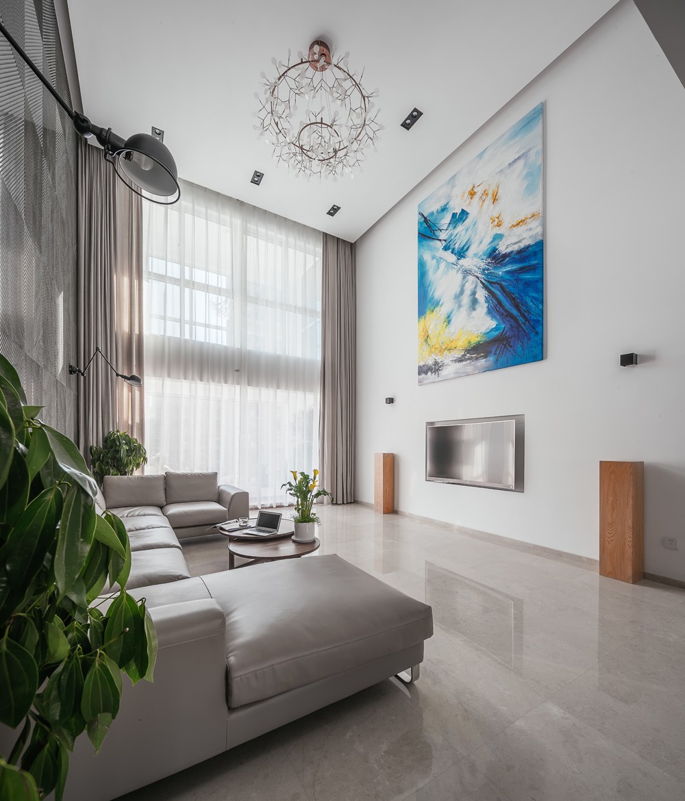 电视背景以少见大,原墙没有做多余的造型,保持整体的安静气氛。