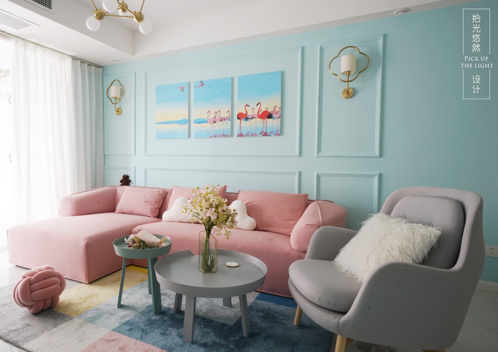 小希同学是因为工作调派原因,在成都买了房子,远在深圳的时候由盆友推荐找到了我们,第一次见面,小希同学她妈妈希望装成美式风格。不过在后面设计中,由于房子是小希同学自己住,所以在征得小希同学同意以后悄悄被我们改成了大家都很喜欢的多彩混搭风格。(偷笑)在配色方面,我们采用了大量的马卡龙色系,营造了一股小清新的感觉。