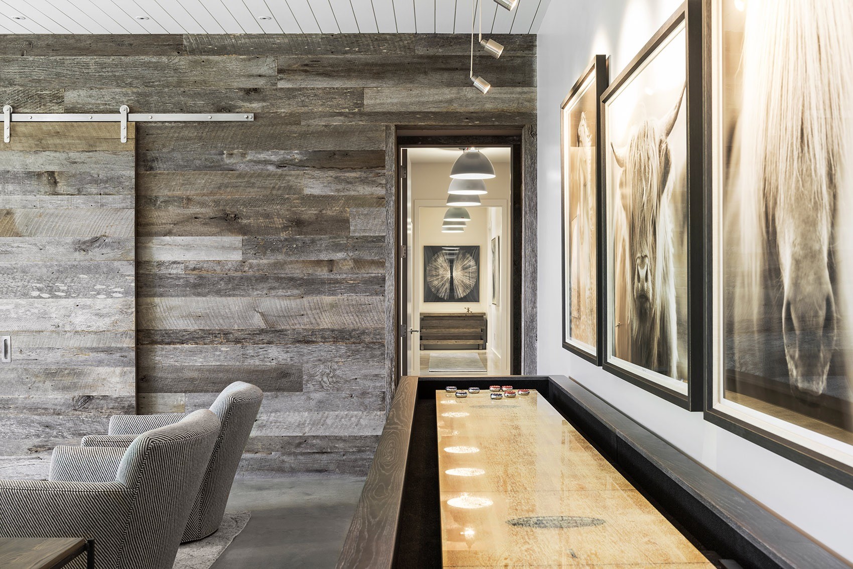 ▼位于低层的游戏室,the lower level features a large game room