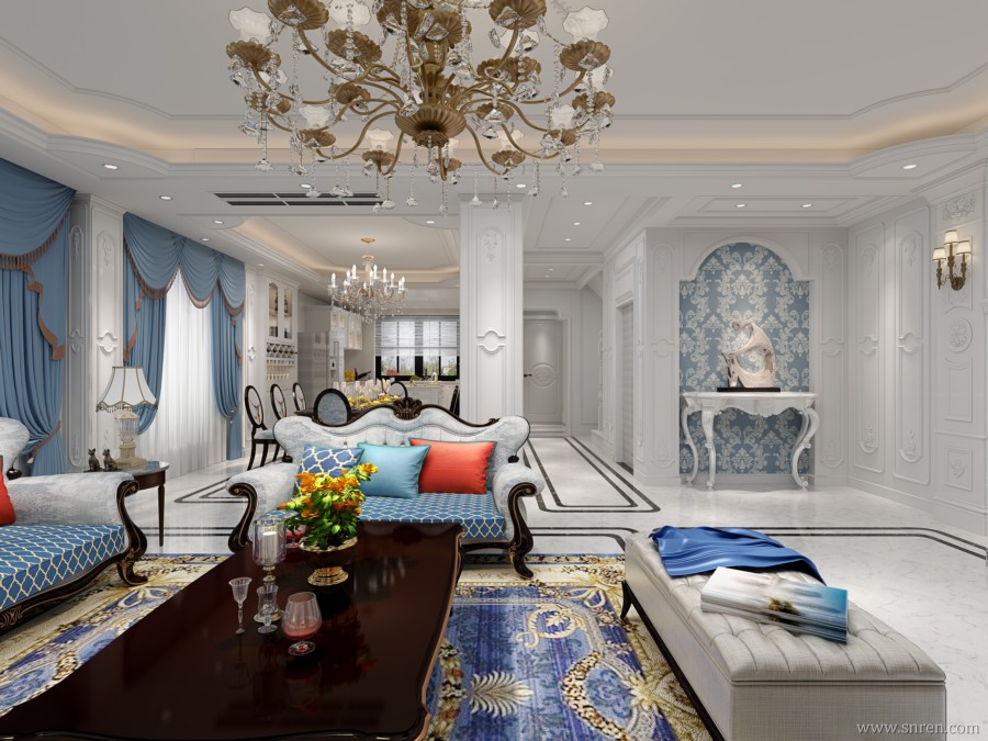 [欧式] 欧式别墅客厅+餐厅+过道+厨房 max2012 带贴图+效果图 |