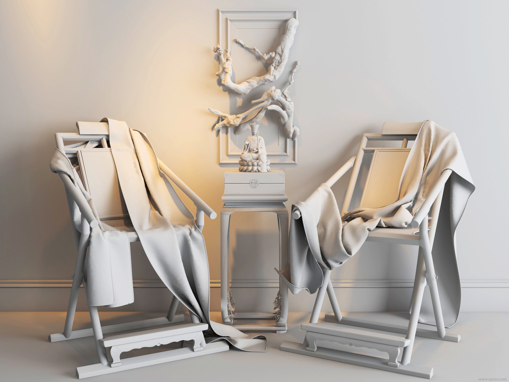 [装饰品] 中式根雕装饰画+中式椅+僧人坐像 max2014 带贴图 |