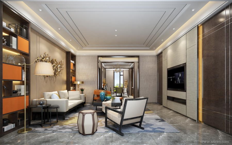 [新中式] 新中式客餐厅 max2012 带贴图灯光材质+效果图 |