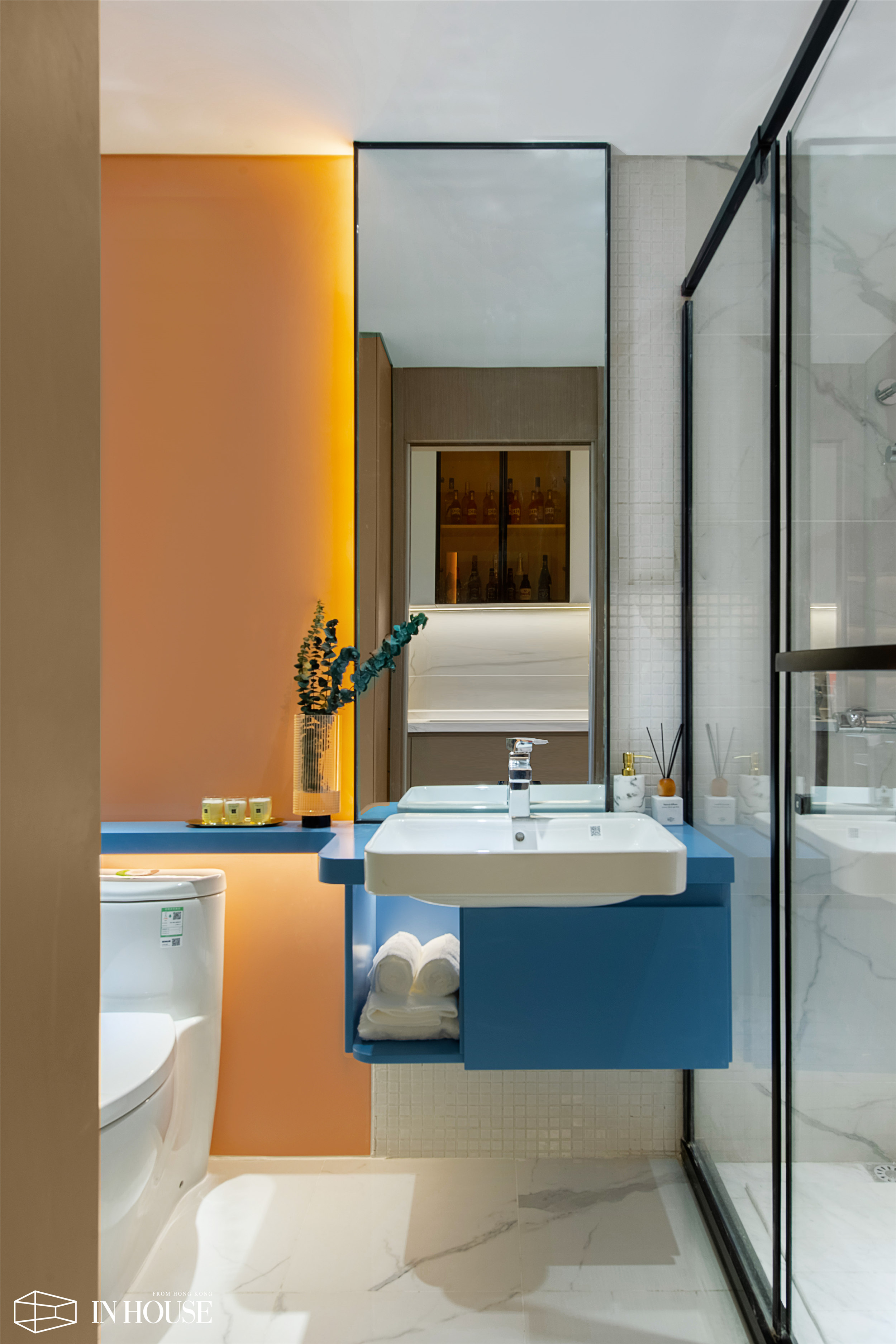 进门之后,通道两侧分别是梳妆台和洗手台。梳妆台内可以放置饰品和化妆品,空间虽小,却非常精致实用。洗手台也可以叫小厨房,可以制作各种美食,开阔的视野,宽敞的空间,舒适自在的在此享受烹饪带来的满足感。
