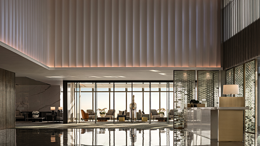 设计师延续了外立面的设计风格,将玻璃、透明亚克力等材质延伸到室内设计中,光线透过这些材质,会交错折射出绝美炫幻的光影。这些光影会随着时间的变化而变化,整个空间变得灵动而富有艺术气质。