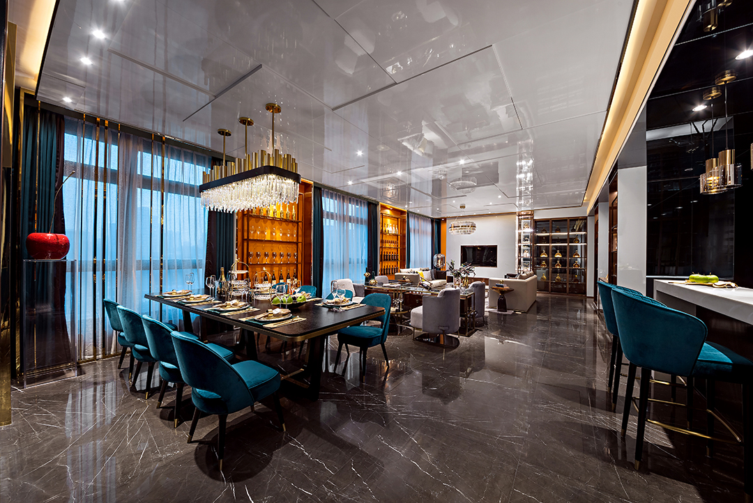巧妙地将自然光运用于室内设计,有助于强化空间的纯粹质感,提升空间的品位和内涵,同时也起到节能环保的作用。在本项目中,玻璃幕墙实现了内外空间的交流,自然光能透过玻璃幕墙照进室内,使得开放风格的空间变得更加通透明亮。