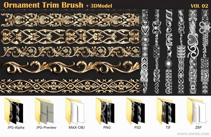 [国外模型] 精品雕花、浮雕模型合集 带贴图【送Zbrush笔刷预设】10套 |