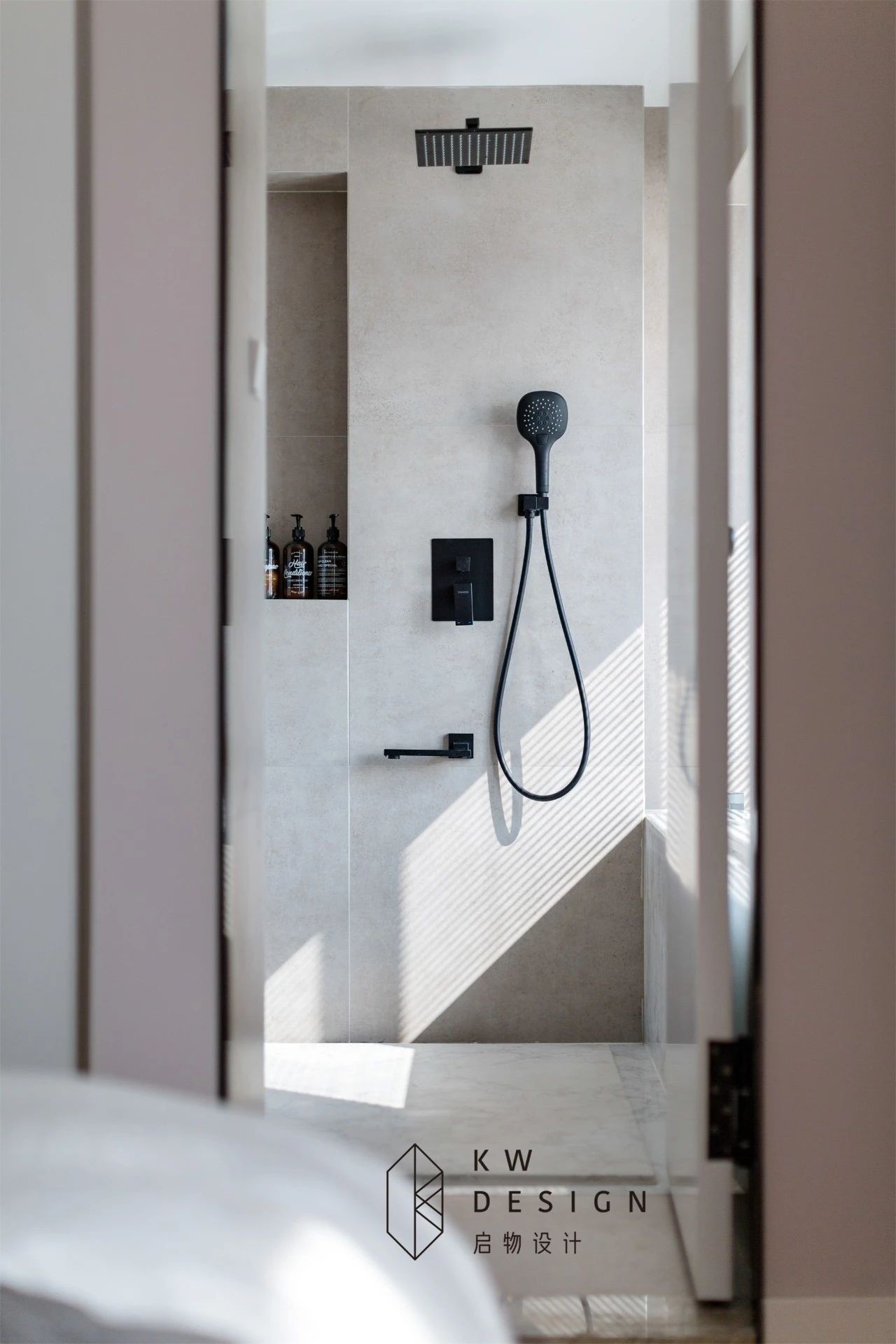 主卧原本是次卧,调整格局并平衡尺寸,下床尾就到卫生间。无论晨起上班洗漱,或是起夜都方便不少。