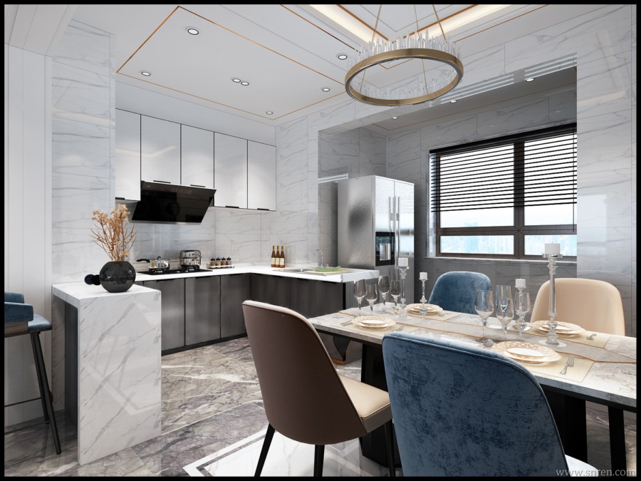 [现代] 轻奢客餐厅+厨房 max2012 带贴图+效果图 |