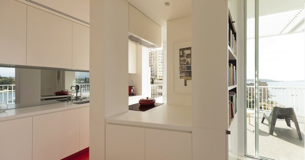 Impressive Contemporary Penthouse Overlooking The Sydney Harbour Christopher Polly Architect completed a contemporary penthouse located in a eastern suburb of Sydney with views of Sydney Harbour to the north and Double Bay and Point Piper to the east. According to the press release we were sent, “the project involved the complete internal reconfiguration and refurbishment of a top floor penthouse to improve the kitchen and bathroom spaces, amenity to the living areas and terrace, lighting, storage and physical and visual connections to the terrace. Commencing at the entry and culminating at the northern terrace, a long joinery device is employed as a means of unifying disparate wall alignments within the public domain, ultimately serving as the key threshold between the public and private areas of the plan arrangement. Its visually planar quality is punctuated by pivoting panels, recesses and apertures that lead to a reconfigured private domain of rooms, new enlarged bathroom and new kitchen respectively.