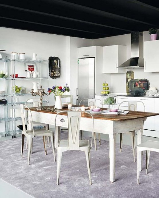 This two-leveled loft by designers Fernando Tapia and Monica Andina is located in Madrid, Spain. It has a typical Spanish national coloring – it's full of art. The loft is very functional, it's divided into two parts: in the first there is a living room, a kitchen and a dining room, in the second level there is a bedroom. Concrete and metal constructions are covered with tender interior colors and vintage furniture. There are portraits, pictures and even decorations on the walls – ants like on the pictures of Salvador Dali. The minimalist colors – white and light grey – are softened by the accessories and comprise a nice frame for the art objects.