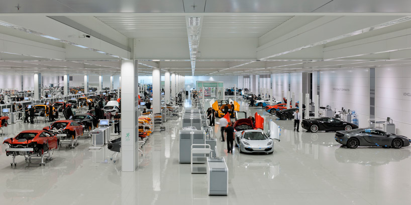 'the mclaren production centre is a further leap forward in the evolution of industrial buildings, both socially and in terms of working conditions and technologically in its flexibility and the sophistication of its services integration. the scale and grandeur of the main hall is a fitting complement to the purity of the mclaren cars, which will emerge from its production line.' - lord foster, founder and chairman, foster + partners -