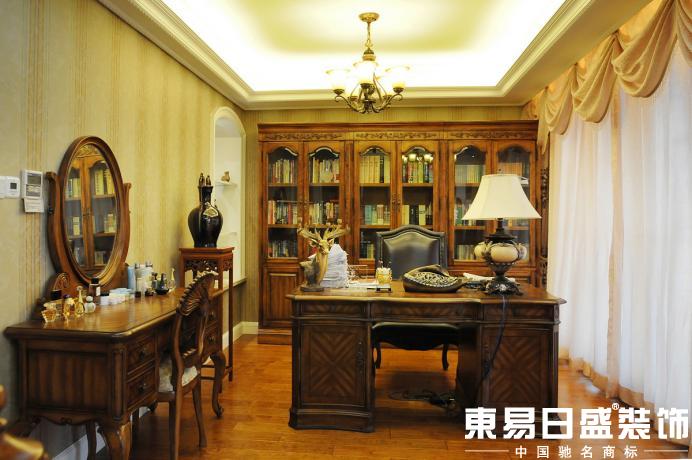 高雅而和谐是新古典风格的代名词。白色、金色、黄色、暗红是欧式风格中常见的主色调,少量白色糅合,使色彩看起来明亮、大方,使整个空间给人以开放、宽容的非凡气度,让人丝毫不显局促。本案墙壁就挑选了用白色线条配米色暗花的墙纸,再配以同色系、颜色更重的窗帘和装饰画,包括饰品也属于这一色系。