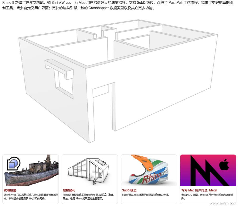 Rhino 8 新增了许多新功能,如 ShrinkWrap, 为 Mac 用户提供强大的速度提升;支持
